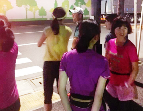 レクチャーの後は、ストレッチをしてからナイトランへ出かけました![]()