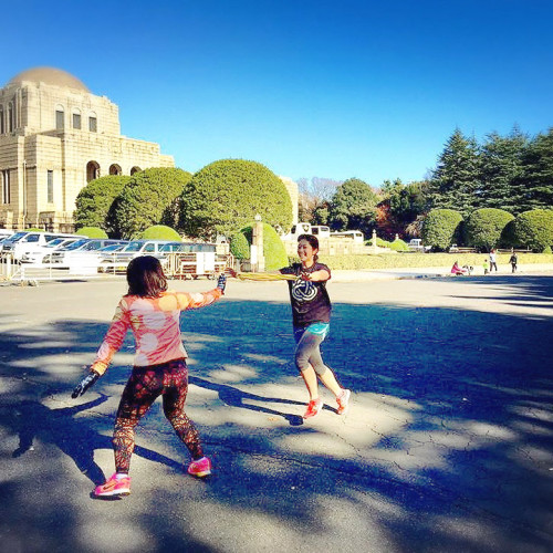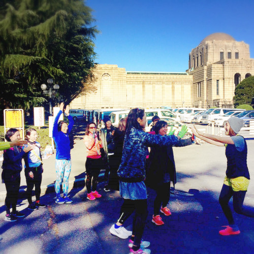 1周1kmの絵画館前コースでのミニ駅伝あし