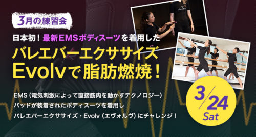 3月のランガール練習会は、日本初!最新EMSボディスーツを着用したバレエバーエクササイズ・Evolv(エヴォルヴ)を女性専用スタジオ「Evolv麻布十番」で体験させていただきました。