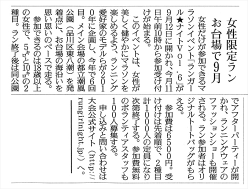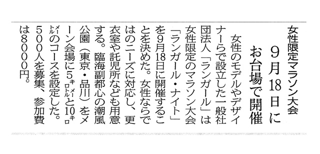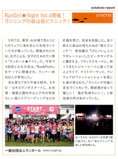 「ランガール」は、走る女性ならではの視点・パワーを活かし、生活を豊かにするアイディアを様々なカタチに変えていく企画集団です