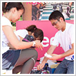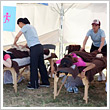 公園内のブースには、協賛各社の最新商品が並んだほか、スポーツアロママッサージや、オリジナルのネイル体験などのサービスも提供しました。