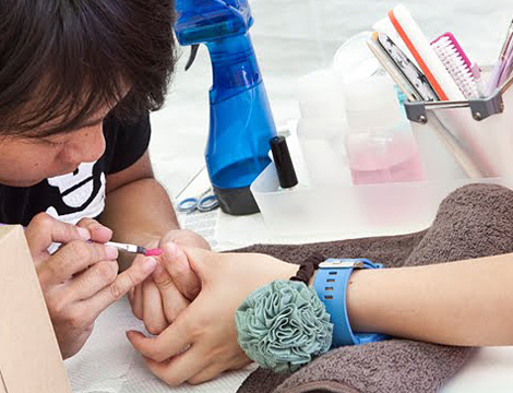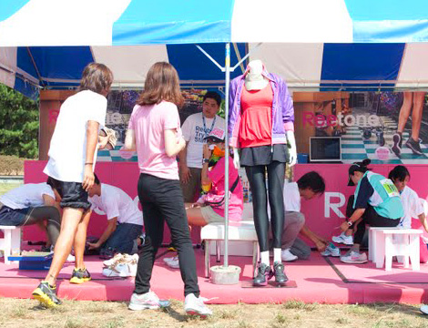 公園内のブースには、協賛各社の最新商品が並んだほか、スポーツアロママッサージや、オリジナルのネイル体験などのサービスも提供しました。