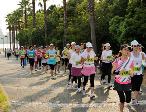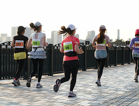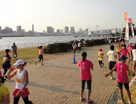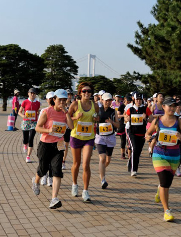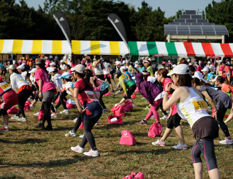 記念すべき第一回大会。2010年2月にRunGirlを結成し、女性ランナーによる女性ランナーのための大会を作ろう!と、資金も実績もゼロの状態から約半年後に大会を開催できた背景には、twitterによりつながった全国のランナー、協賛社さまやご協力いただいた皆さまからのたくさんの温かい応援がありました。