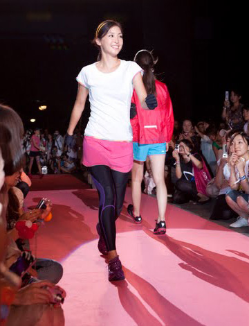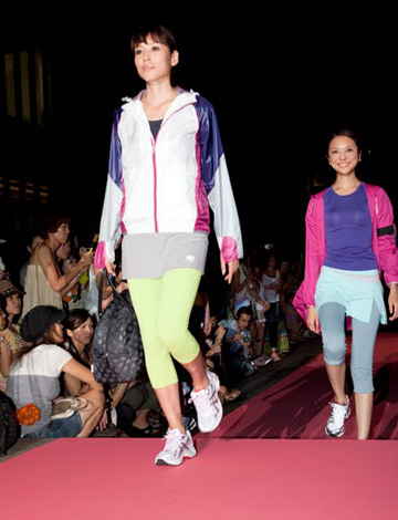 "ランガール★コレクション"と題したファッションショーでは、アシックス、アディダス、プーマ、ミズノ、リーボックの最新ランウェアを展開。抽選会では、BELLESIORAのダイヤモンドネックレスや、グアムココロードレースのご招待があり、盛り上がりました。