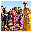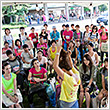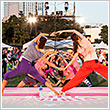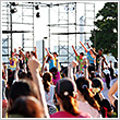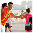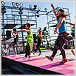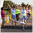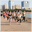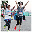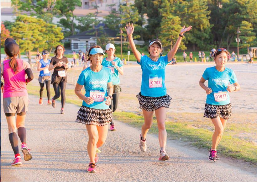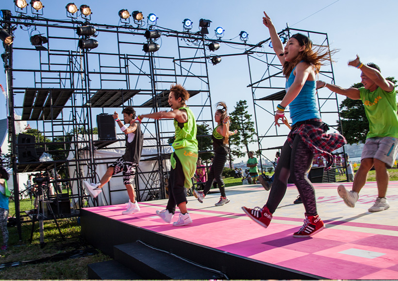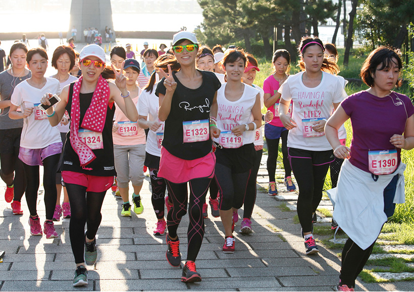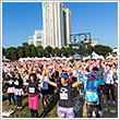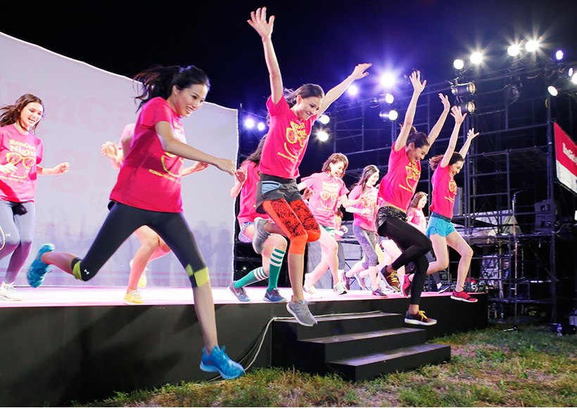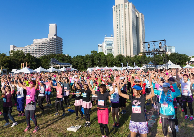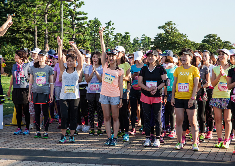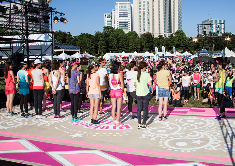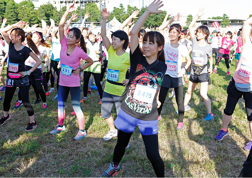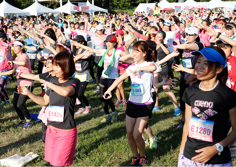 ラン前のウォーミングアップ"BOKWA(ボクワ)"では、ランナーと来場者が一斉にダンスステップを踏み、気分を一気に盛り上げました。