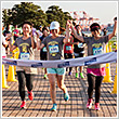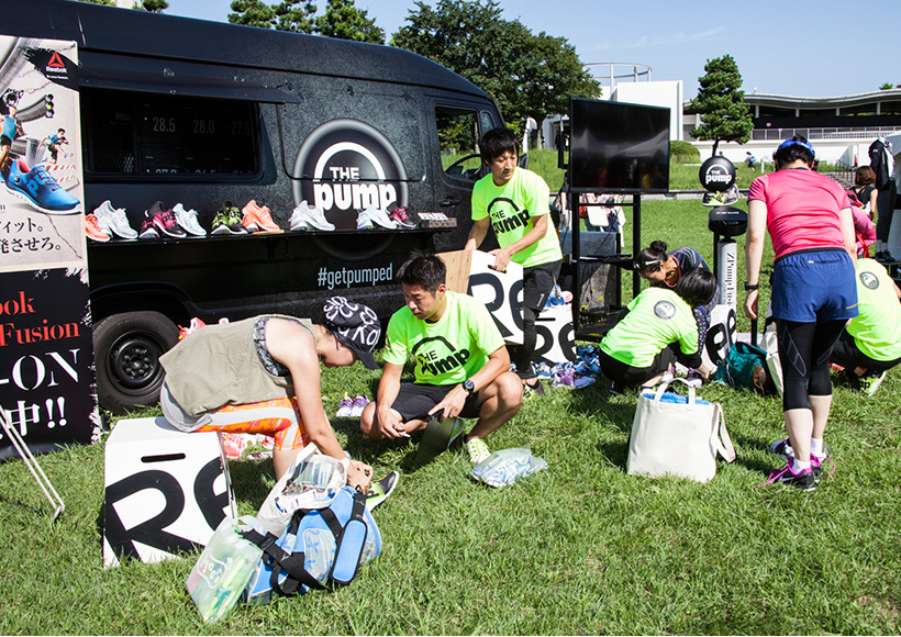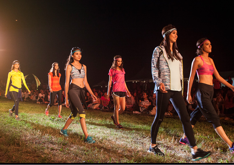 緑の芝生をランウェイに行われたラン&フィットネスウェアのファッションショー「ランガール★コレクション」には、PUMA、Reebok、BOKWA、adidas、UNDER ARMOURの最新ルックが登場。