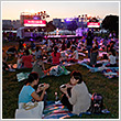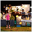 徐々に辺りが暗くなり始める頃、Kazzさんのギターの生演奏の音色が優しく会場を包み、ステージの上にはスクリーンが張られミニシアターへと変身。