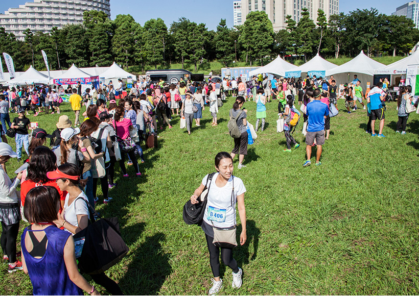 「マーケットエリア」には、スポーツをはじめコスメ、旅、健康、グルメ、ショッピングなど、女性ランナーの関心が高い様々なジャンルのブースが勢揃い。