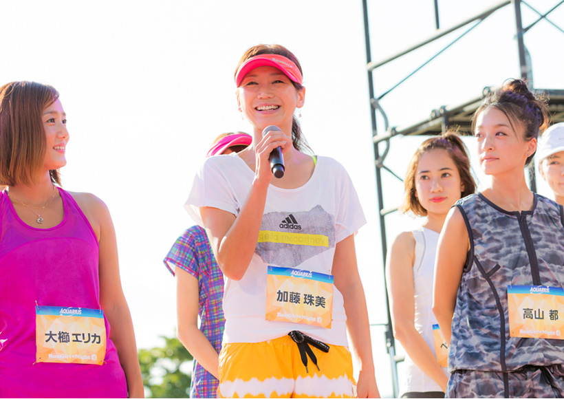 15時40分、大会テーマ「RUNderful LIFE!」の文字が描かれたメインステージで始まったオープニングセレモニーには、華やかな17名のゲストランナーが登壇。