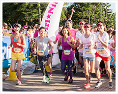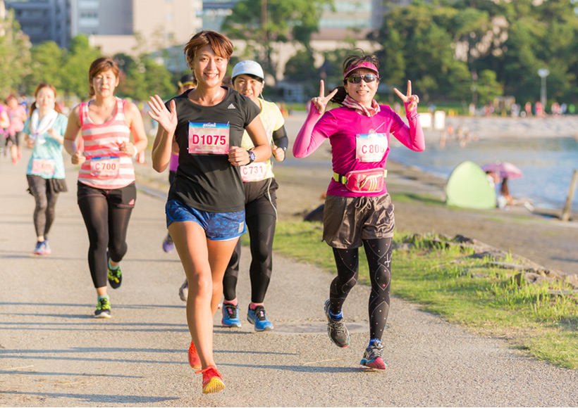 16時30分、海沿いに設けたスタートゲートより、5キロ2ウェーブ、10キロ3ウェーブに分かれてランがスタート!