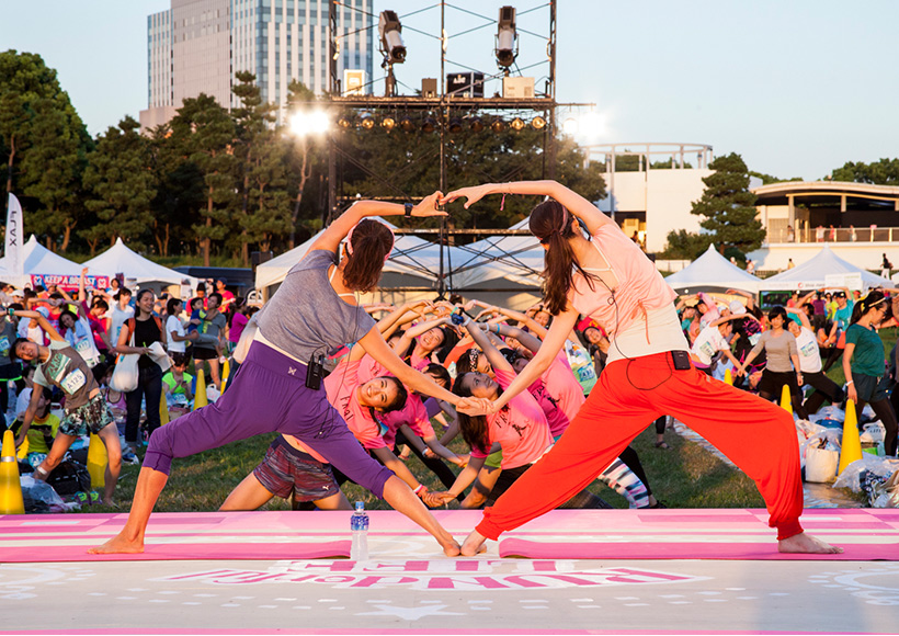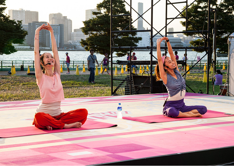 ゴール後は、夕陽が沈み行く中、中原歩さん&渋木さやかさんによるサンセット・ヨガでクールダウン。