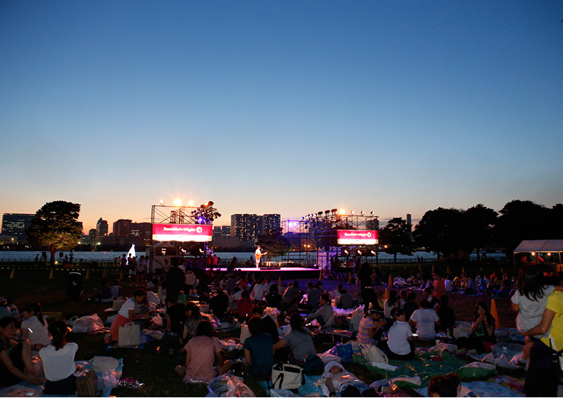 メイン会場の潮風公園・太陽の広場には、海を臨むステージや協賛&協力各社のブースと飲食テントが広場を囲むように立ち並びました。