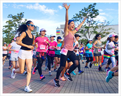 協賛各社のブースでは、お肌からヘアケアまで充実のコスメや美容商品のフリーテスティング、スポーツシーンに合うメイク体験やデモンストレーション、最新ランニングシューズの試し履き、体の歪みチェック、マッサージなど、女性ランナーに嬉しいサービスが提供され、ランまでの日中の時間帯を中心に多くのランナーで賑わいました。